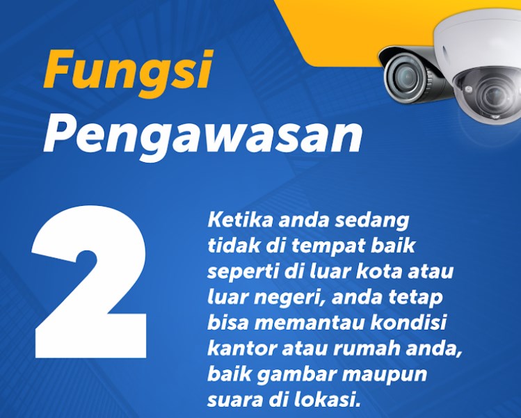 Dengan memasang CCTV, keamanan akan meningkat karena CCTV dapat merekam aktivitas yang terjadi di sekitar tempat yang dipasang CCTV. Jika terjadi tindak kejahatan, CCTV dapat membantu dalam penyelidikan dan mempermudah pengungkapan kasus tersebut.